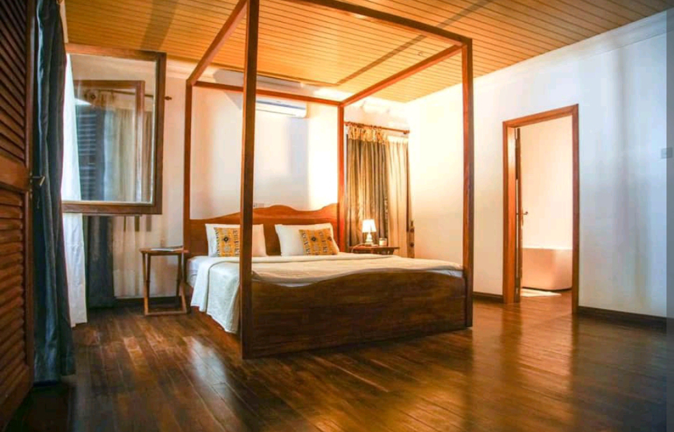 Each apartment is a 3-bedrooms en-suite with a living room and is aesthetically pleasing. One of the apartments has a fitted kitchen accessible to guests.Each room rents for $95 per night and the 3-bedroom apartment goes for approximately $300 per night.