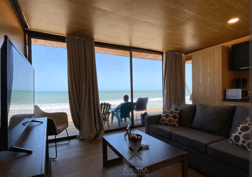 These cabins are designed to provide panoramic views of the Atlantic Ocean, and both have access to a private beach.